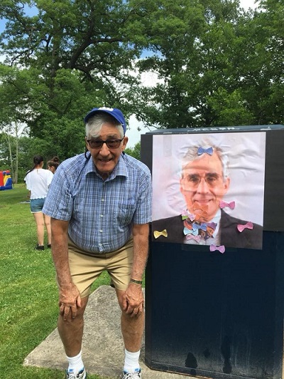 Some of you may know of Dr. Reichman’s love for bow ties, but not many know the reason why he likes them. “When I was a medical student, my tie would touch the cadavers and my mother would be annoyed with the unpleasant odor from my tie, [so] she encouraged me to wear bow ties. From then on, I have always worn bow ties; I have over 200 of them.” This summer, GTBI’s annual picnic was held to honor his retirement with an informal gathering of friends and family. This included good food (BBQ – Dr. Reichman’s favorite) and fun games in the sunny outdoors. One game involved pinning a bow tie while blindfolded on an enlarged picture of Dr. Reichman. Much fun was had by children and adults who gave it their best shot, including Dr. Reichman himself!
